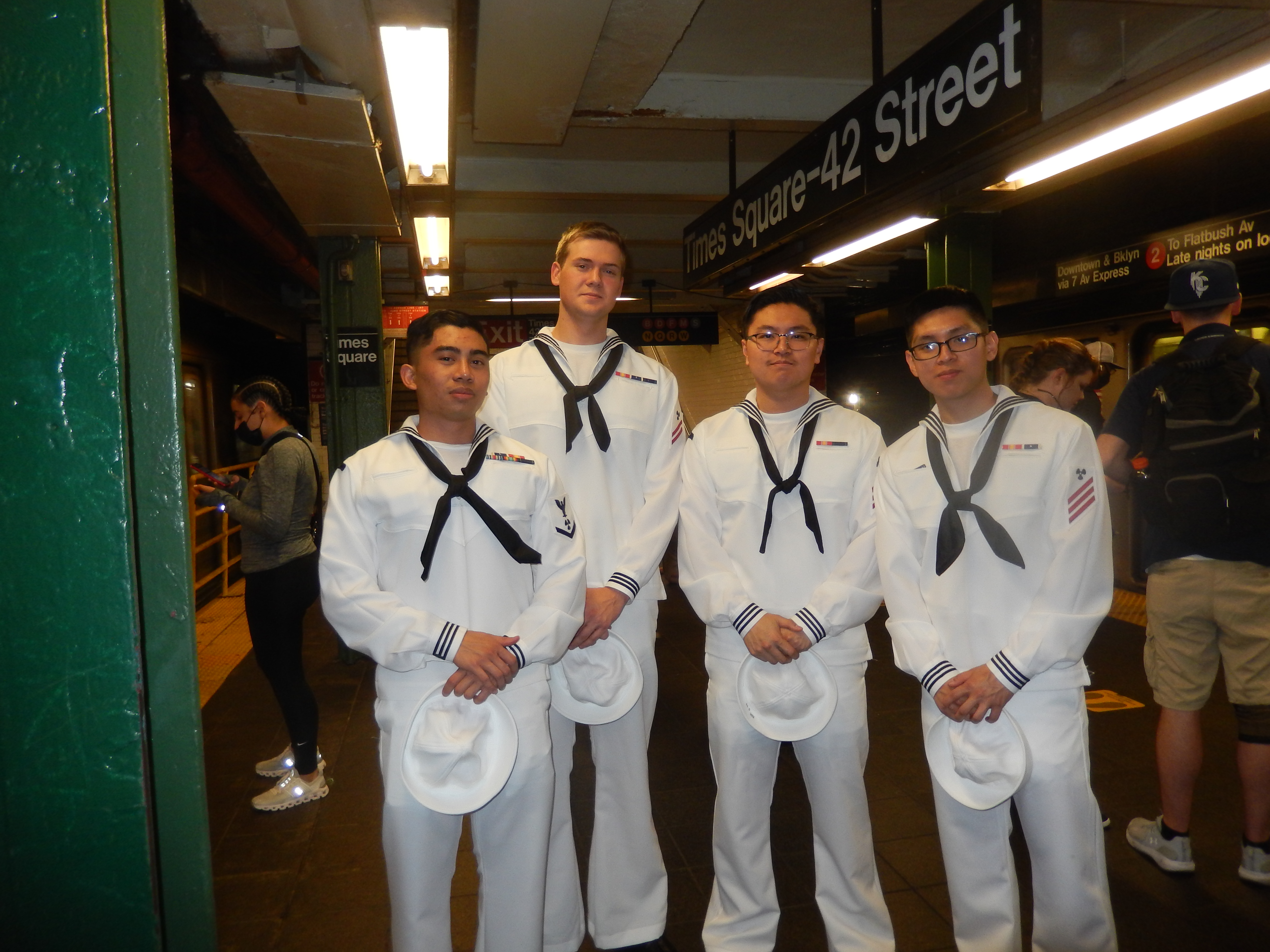 We stopped at Times Square where there was a Fleet Week display. I took the opportunity to play underwater Tic-Tac-Toe with a Navy SEAL – I won! On our way back to the hotel, we ran into some of the Bataan’s Navy crew on the subway.