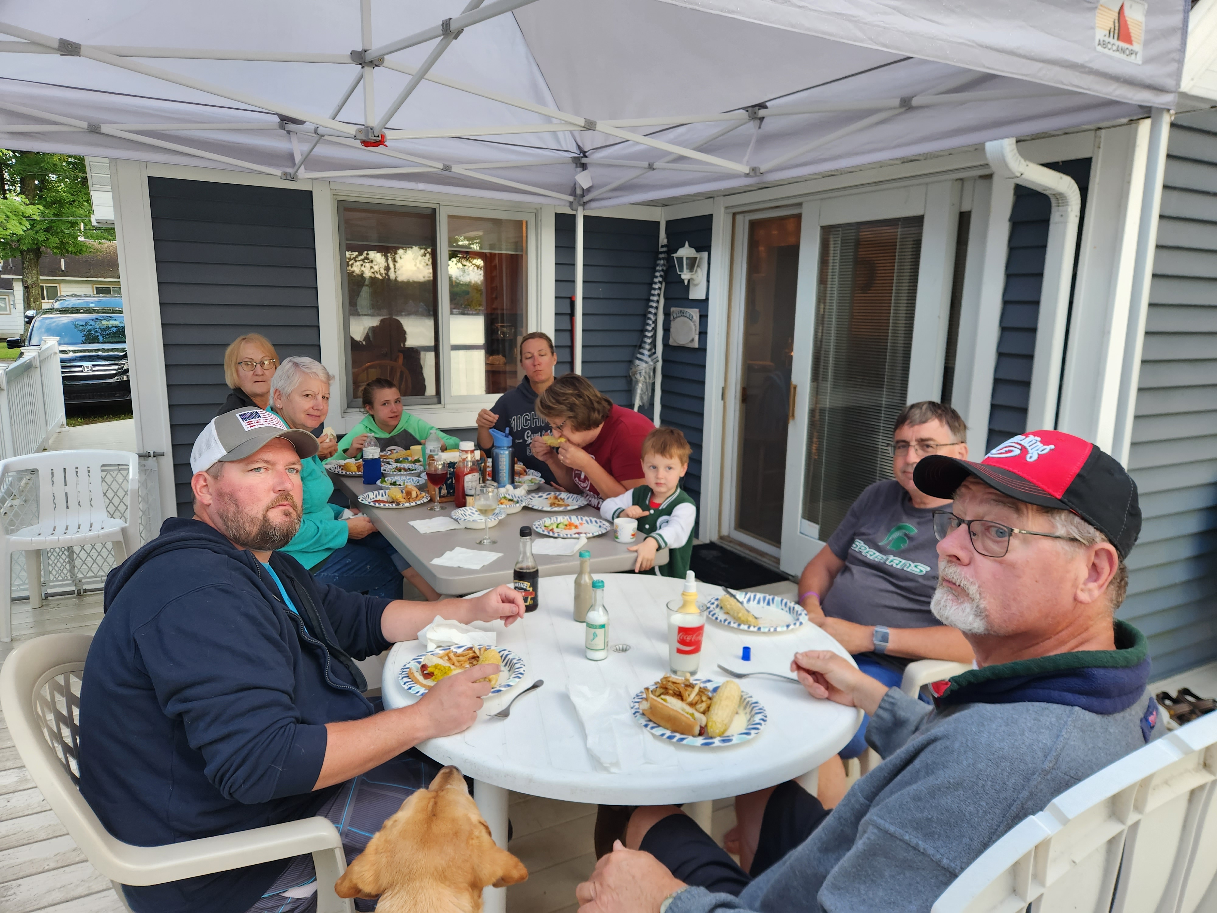 From Riverside, the rest of the family headed back to Lakewood and University Place and we continued east to Michigan. With a brief stop in Duluth, MN, we made a quick drive (six days) to join Pat’s family at their cottage on Rifle Lake, near West Branch. There we visited with family and celebrated Independence Day. After our time at Rifle Lake, we drove to Bad Axe and “moochdocked” in Geri and Marcia’s backyard. We spent about a week visiting with family before we drove to the Lansing Cottonwood Campground, our “go to” campground in Lansing. We were able to spend some time with our son, Dave, and see old friends. We did a lot of biking on the Lansing River Trail and just relaxed a bit.