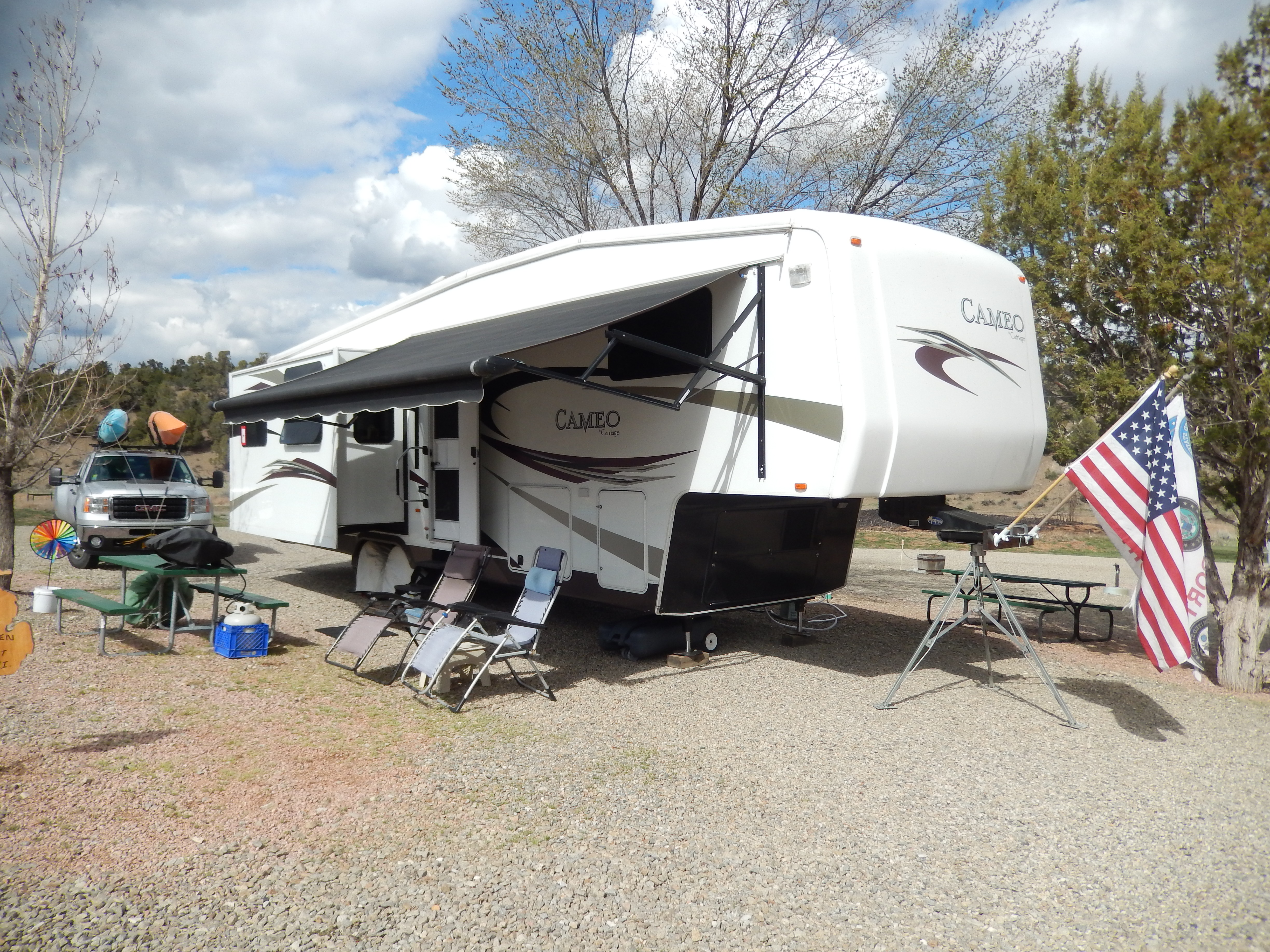housekeeping activities and getting some work done on the trailer at a local RV dealer. I also searched out some geocaches and had real challenges in finding some of them. The cachers that hid these were quite creative in how they hid them. One had drilled a hole in the bottom of a rock and stuck a 35mm film container in the hole to hold the cache log.