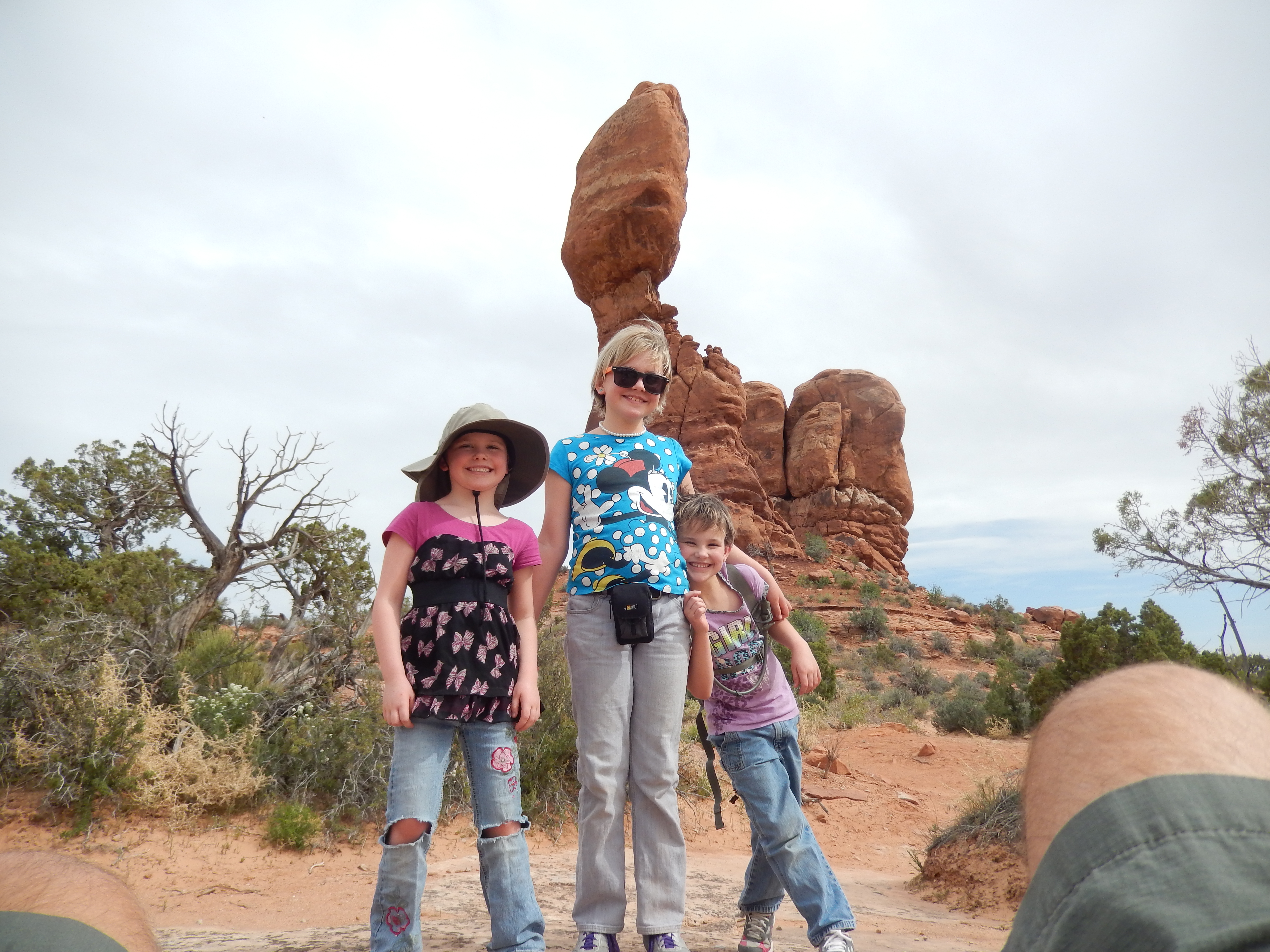 Mississippi to Salt Lake with Sandra’s parents, they made a brief stop here. Katrina remembered seeing the Delicate Arch and seeing it again was her big priority. We all agreed that the hike all the way to that arch might be farther than we wanted to hike, so we were content to drive to the Delicate Arch Viewpoint, hike part way, then view it through binoculars.